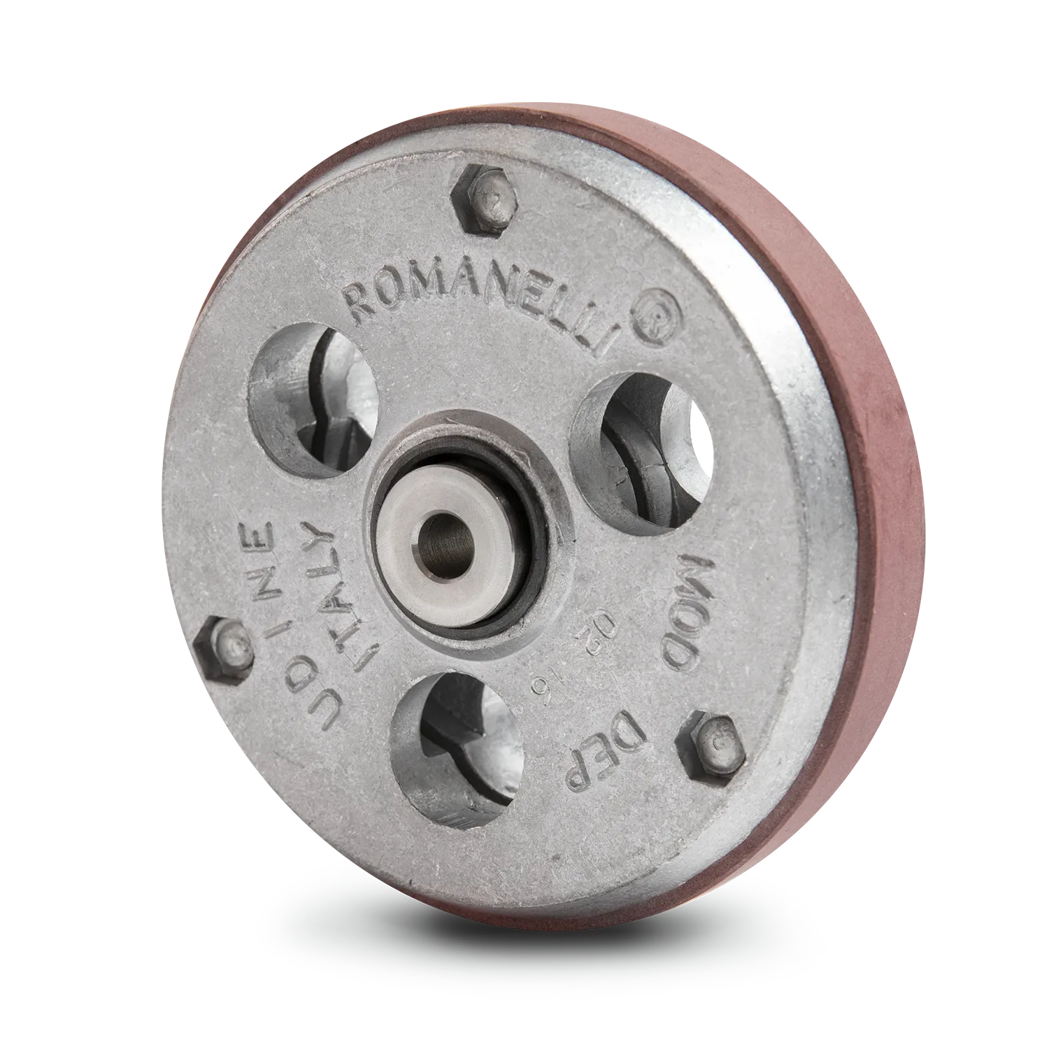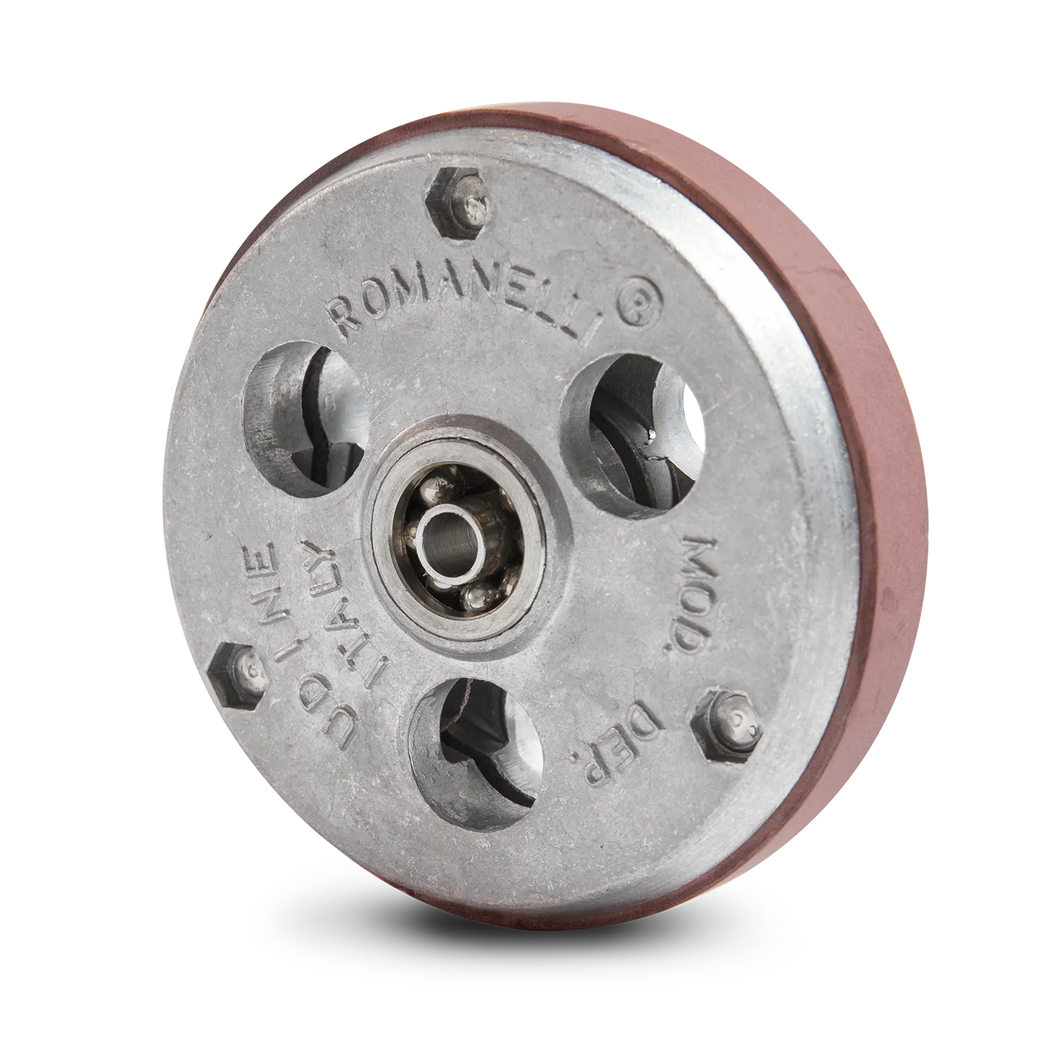 Die Teflon-Buchse ist das Herzstück der Romanelli-Rollen. Sie sorgt für einen reibungslosen und nahezu lautlosen Betrieb. Diese Buchse benötigt keine zusätzliche Wartung, was Zeit und Kosten spart.